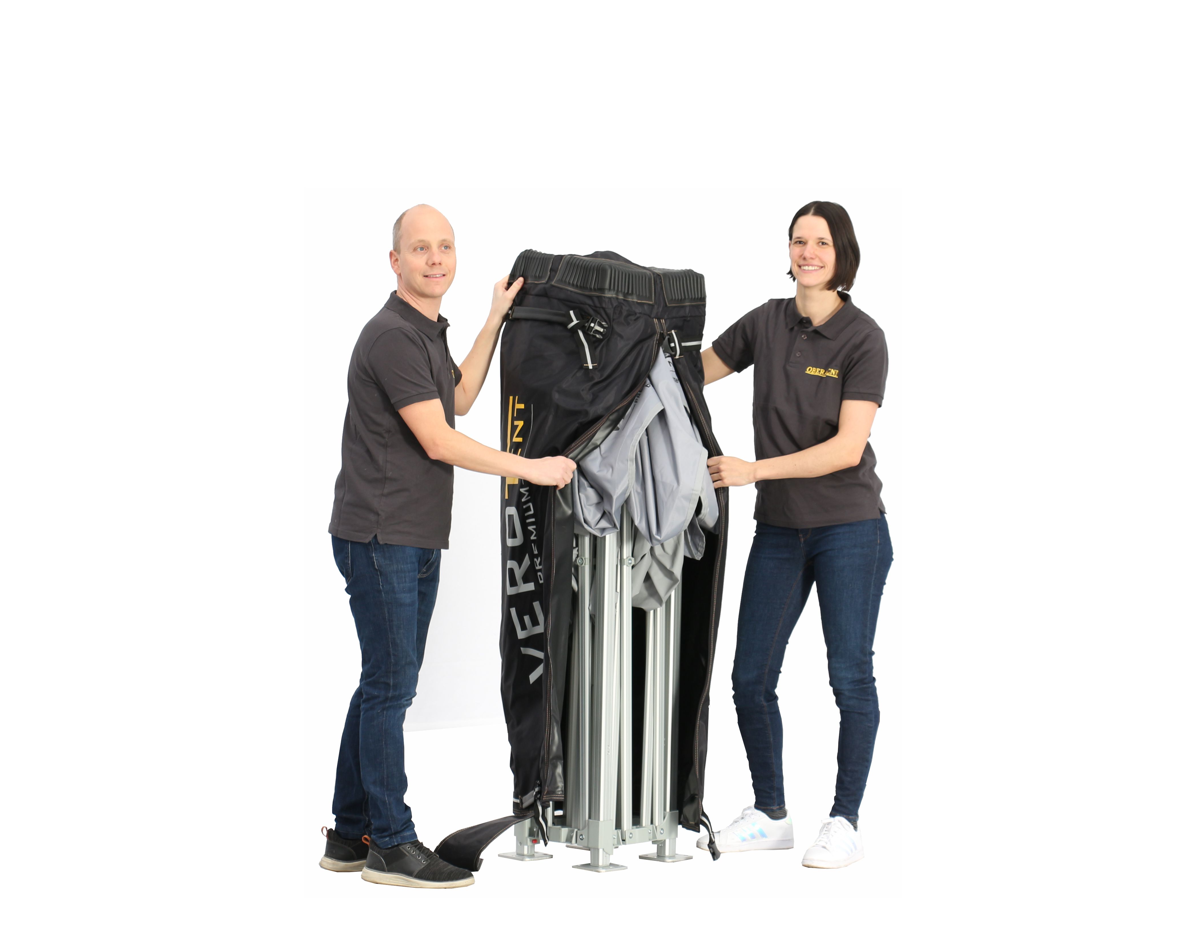 Das Verotent Faltzelt wird in einer robusten Premium-Tragetasche geliefert. Nimm das Gestell samt Dach aus der Tasche und stell es aufrecht auf den Boden.